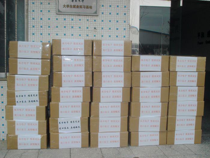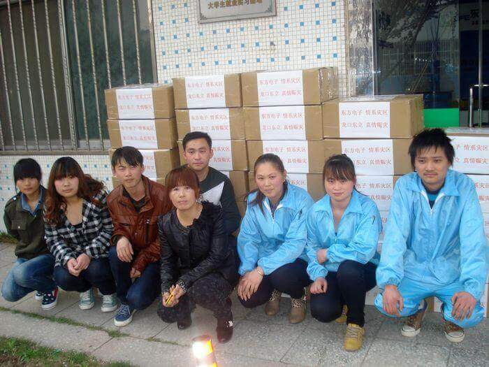 4月20日早8点,四川雅安发生7级地震,消息传来后,南昌市德创广告传媒有限公司第一时间做出反应,公司旗下以生产线缆、灯具和汽车售后服务产品为主营的东立公司立即组织员工加班加点,赶制灾区可能急需的照明设备LED头灯和手电筒,用最快的速度发往灾区,无偿支援灾区救援工作。