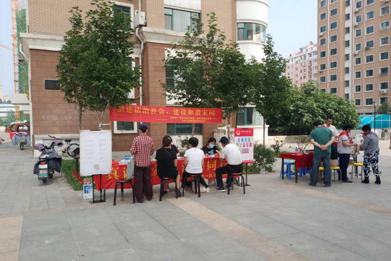 活动现场邀请了山东三和德通律师事务所民法方面专职律师、烟台银行机场路支行业务人员为社区居民免费提供咨询服务。